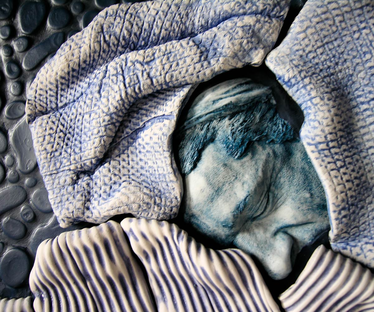 Sonno Profondo, 2006, ceramic, porcelain, pigmented plaster, 94.5×94.5 inches – 240×240 cm. Permanent installation Augusto subway station, Napoli, Italy