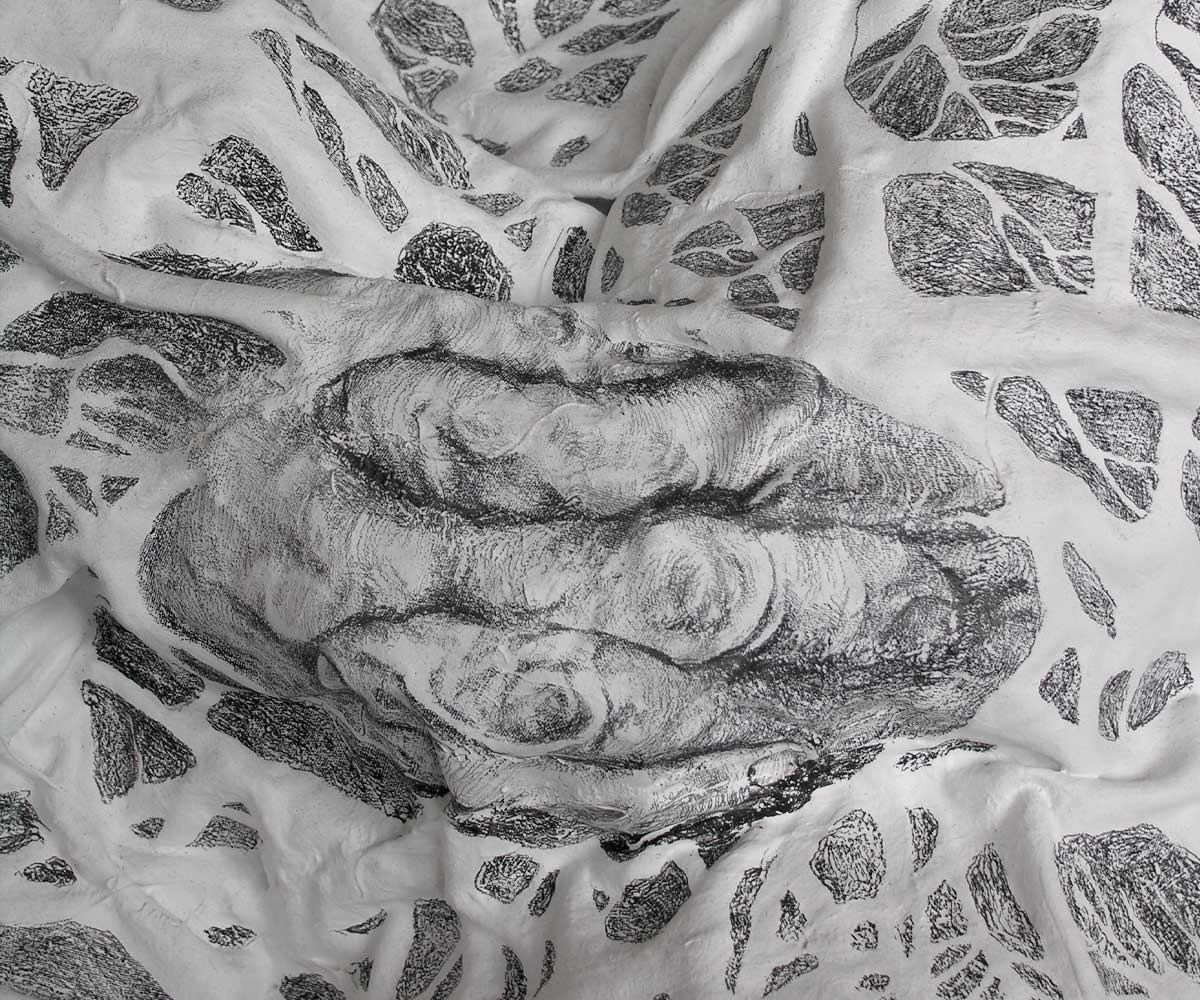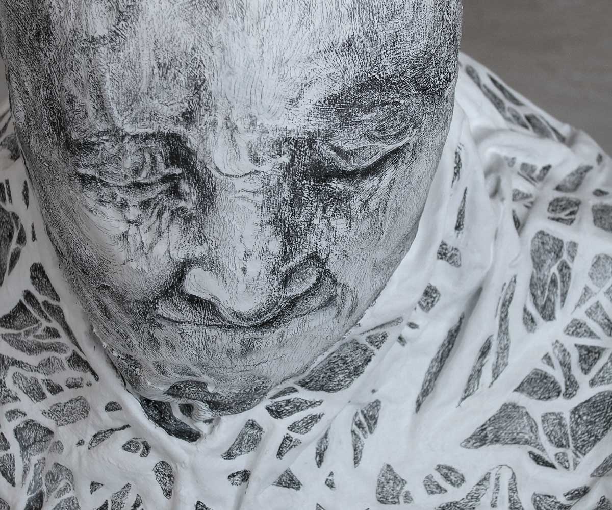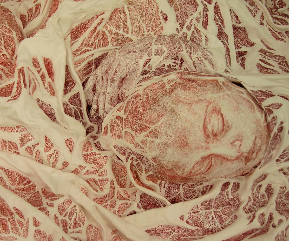Mother, 2006, colored pencil on acrylic on papier-mâché, soil, 46x46x32 inches – 115x115x80 cm, detail