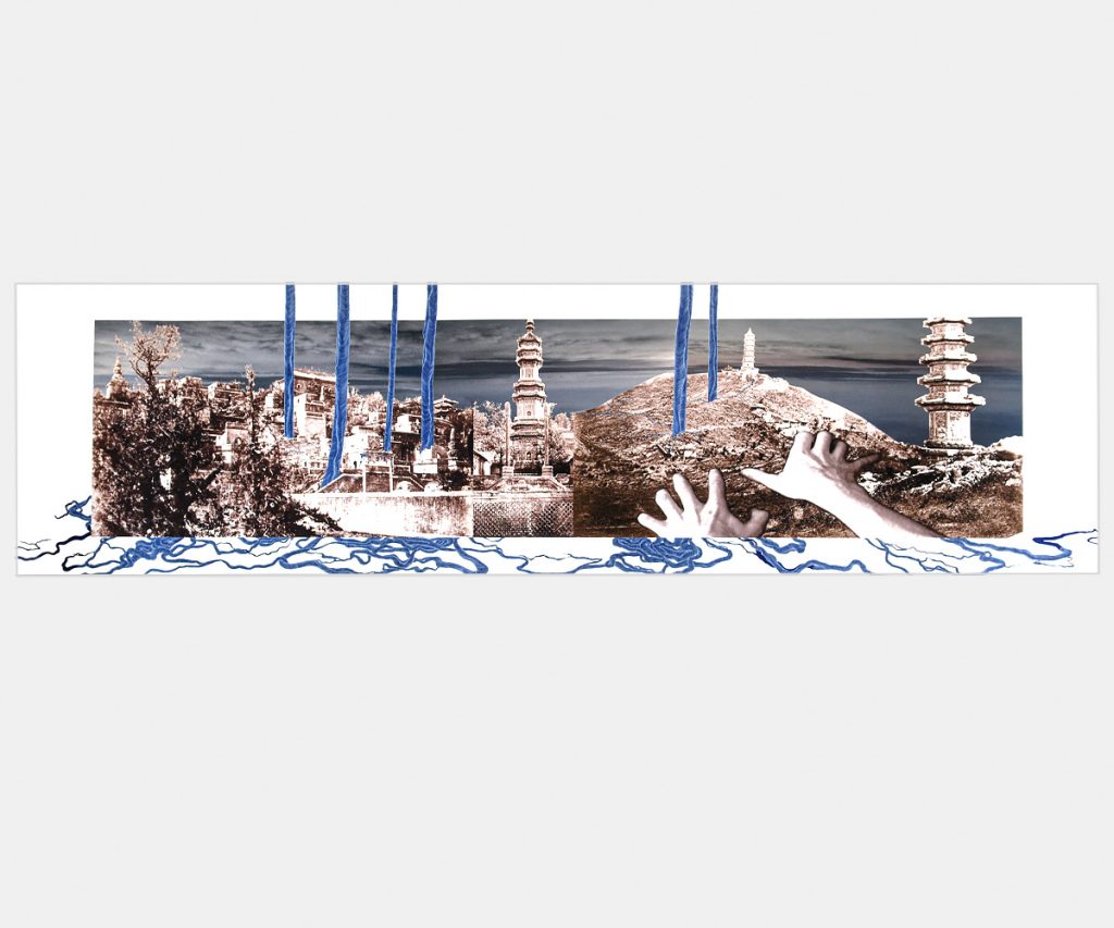 “During her residency at the Isabella Stewart Gardner Museum in 2007, artist Luisa Rabbia was inspired by photographs Isabella Gardner collected and pasted into elaborate travel scrapbooks while traveling in China in 1883. . . . In Travels with Isabella (2008), Rabbia takes and rearranges these archival photographs to create a video of an imaginary landscape, and a running panoramic view of her own journey through these photographs, and through space and time. The artist animates these archival photographs with her own drawings, along with music and other images inspired by her residency. The result is a fantastical narrative that is both contemporary and historical”. (Pieranna Cavalchini)Travels With Isabella (1), 2008, colored pencil on acrylic on archival ink jet print, 24×72 inches – 61×180 cm. Source material Isabella Stewart Gardner Museum, BostonTravels With Isabella (2), 2008, colored pencil on acrylic on archival ink jet print, 24×88 inches – 61×220 cm. Source material Isabella Stewart Gardner Museum, BostonTravels With Isabella (3), 2008, colored pencil on acrylic on archival ink jet print, 24×88 inches – 61×220 cm. Source material Isabella Stewart Gardner Museum, Boston