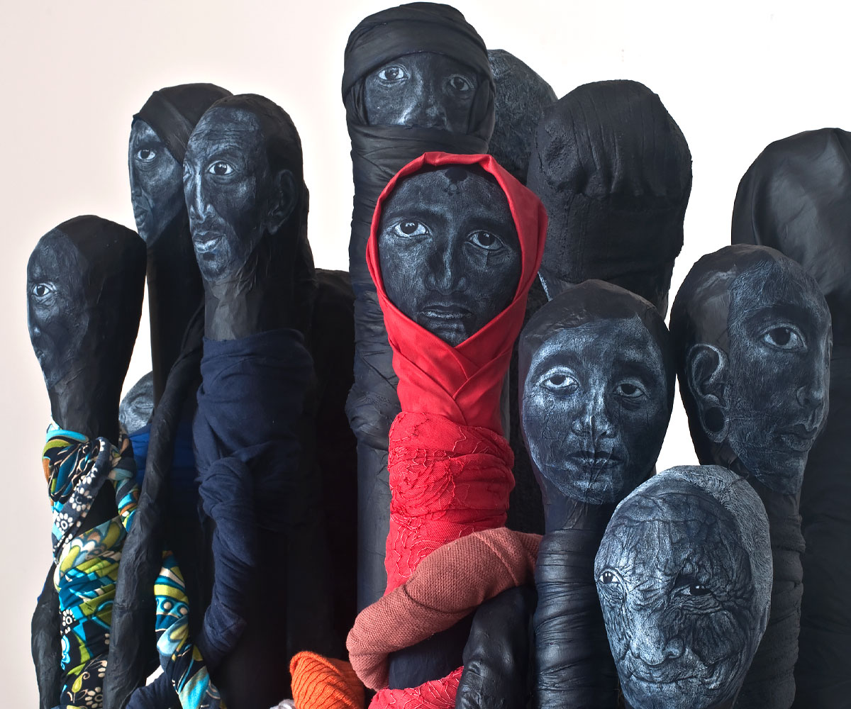 Crowd, 2011, colored pencil, acrylic, papier-mâché, second-hand clothing.