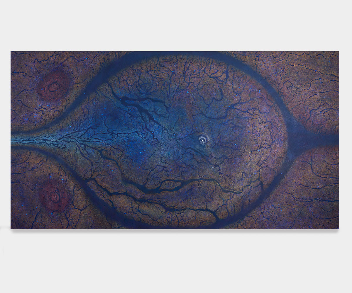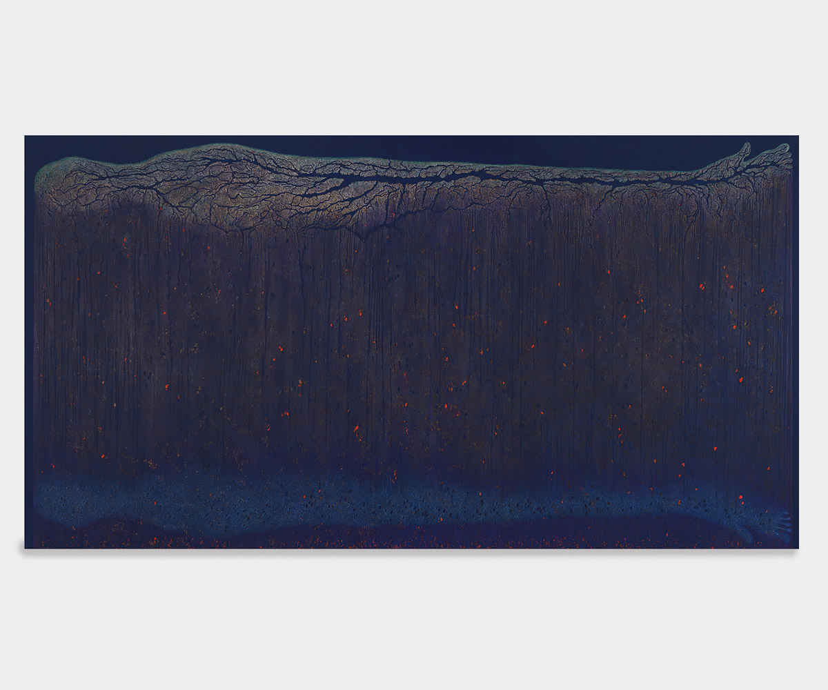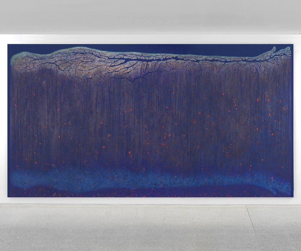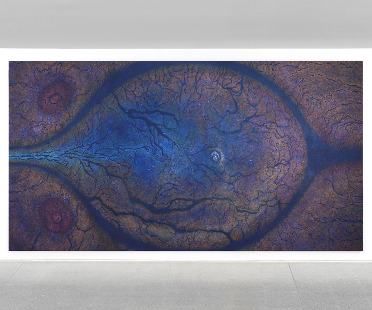 Birth, 2017, colored pencil on acrylic on canvas, 108×202 in – 274×513 cmDeath, 2017, colored pencil on acrylic on canvas, 108×202 in – 274×513 cmDeath, 2017, colored pencil on acrylic on canvas, 108×202 in – 274×513 cmAnother Country, 2017, colored pencil on acrylic, 102 x684 in – 260×1737 cm. Installation view Collezione Maramotti, Reggio Emilia, ItalyAnother Country, 2017, colored pencil on acrylic, 102 x684 in – 260×1737 cm, detail. Installation view Collezione Maramotti, Reggio Emilia, ItalyLingam-Yoni, 2017, colored pencil on acrylic on canvas, 74×48 in – 188×122 cm each panel.
