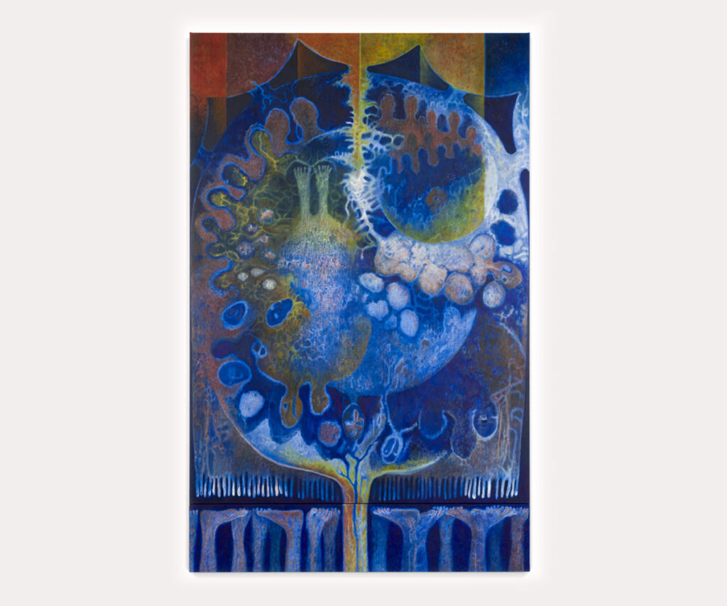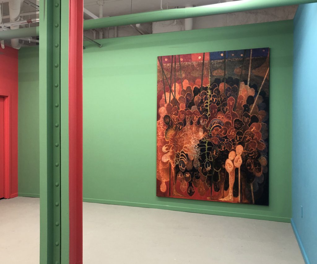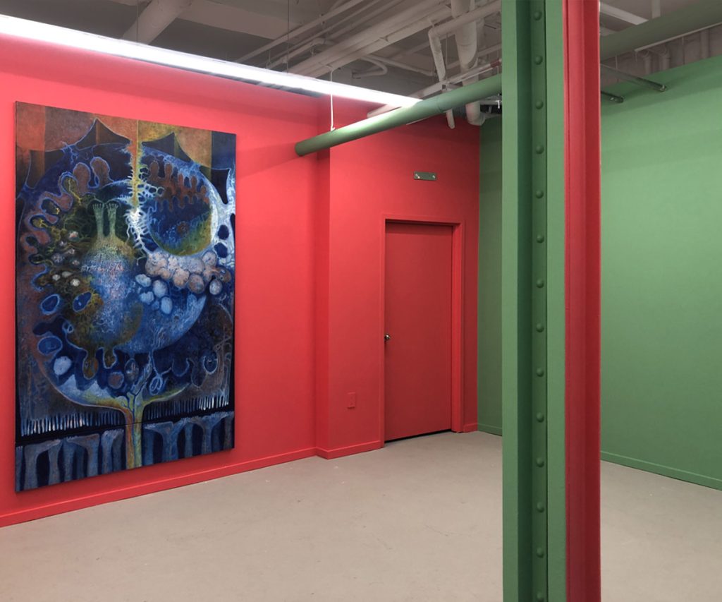 Installation view. The wall colors at Diacono Gallery were chosen by Mario Diacono to symbolize the four elements: fire, water, earth, and air.Installation view. The wall colors at Diacono Gallery were chosen by Mario Diacono to symbolize the four elements: fire, water, earth, and air.
